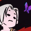 Description: painterly side profile of Thanatos with purple butterfly